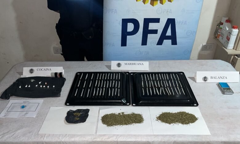 Con las pruebas recolectadas, el Ministerio Público Fiscal ordenó el allanamiento del domicilio, operativo que culminó con la detención de dos personas de 20 años. Durante el registro, los agentes incautaron varias dosis de clorhidrato de cocaína y 180 dosis de marihuana listas para su comercialización. Además, se secuestró una balanza de precisión, cuatro teléfonos celulares y la suma de 489.900 pesos en efectivo, presuntamente provenientes de la actividad ilícita que se desarrollaba en la propiedad.
