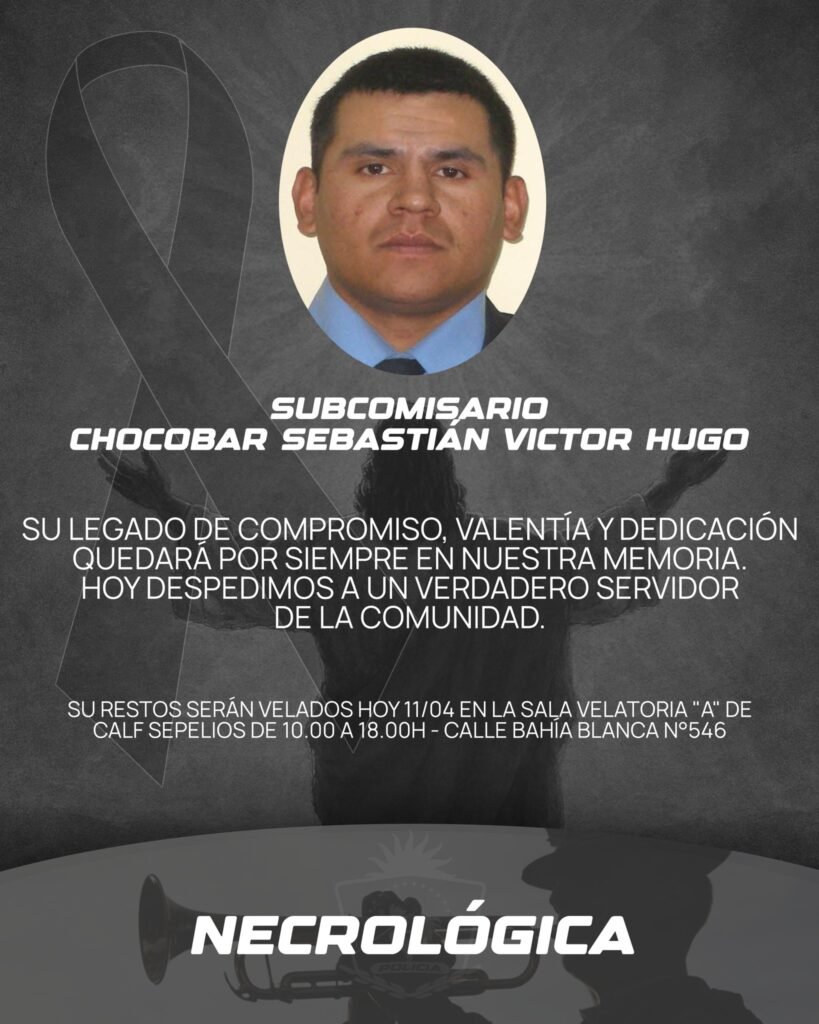 Una tragedia que enluta a la Policía de Neuquén y a los vecinos de la zona. El Subcomisario Sebastián Víctor Hugo Chocobar, de 42 años, perdió la vida tras un colapso de salud que movilizó a los servicios de emergencia en un intento desesperado por salvarlo.