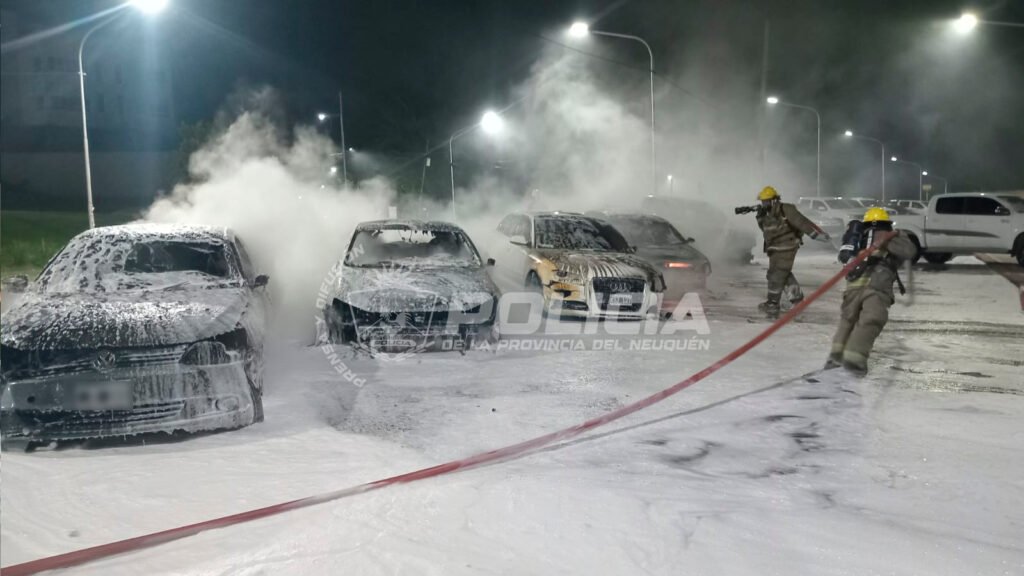 La ciudad de Neuquén fue escenario de un violento ataque incendiario a la 1:00 de la madrugada de este miércoles. Siete vehículos pertenecientes a la flota de la concesionaria Exclusive Car fueron consumidos por las llamas en el estacionamiento central de la calle Leloir, casi Illia, en un sector estratégico y altamente monitoreado frente a la Legislatura provincial.